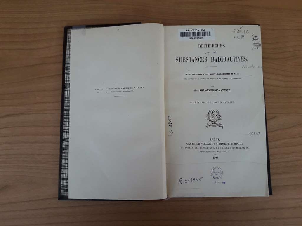 3556 - Recherches Substances Radiactives. M.Skodowska Curie.